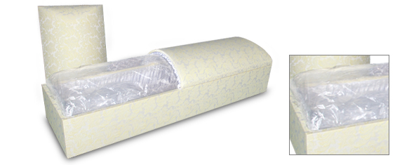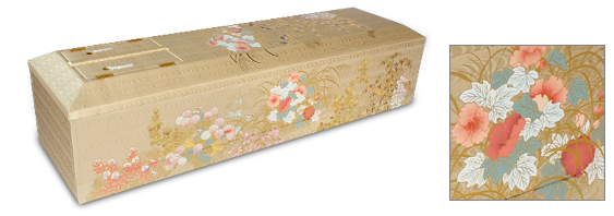 :高級感のある落ち着きのある花柄です。絢爛な棺です。